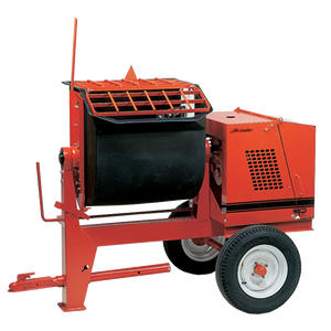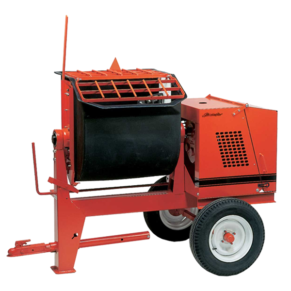 Standard raised frame construction allows for convenient dumping to a wheel barrow. (Standard on all mixers 6SR and larger)
