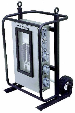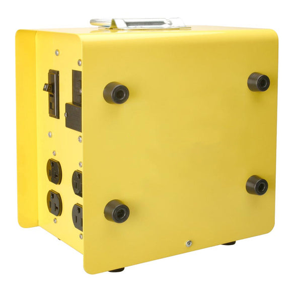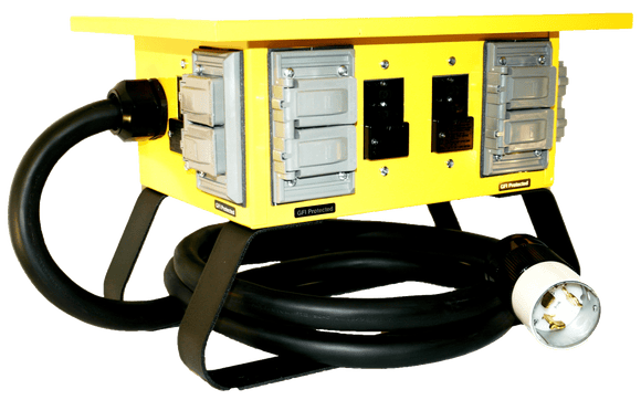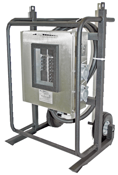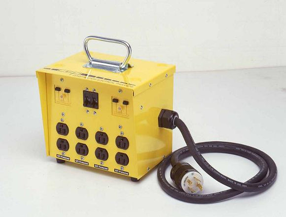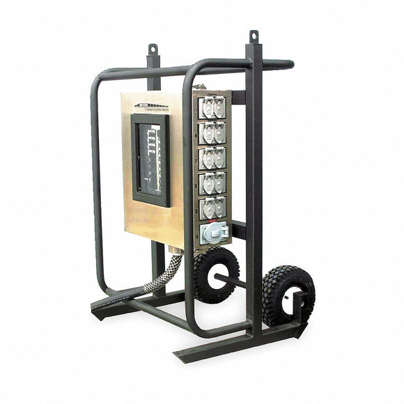 Temporary power distribution substations and portable power distribution panels are used to convert one type of voltage to another type of voltage. This allows the user to power a variety of devices from multiple receptacles and take full advantage of the available power source.